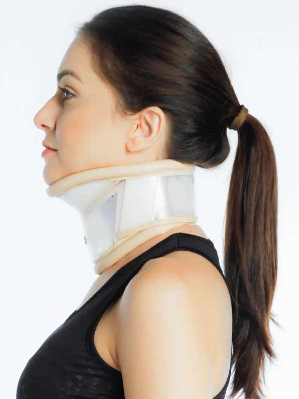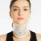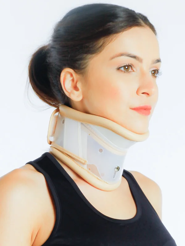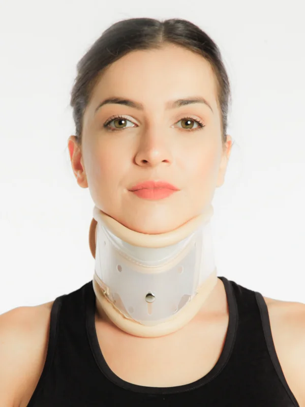 *After making sure that the chin fits into the slot on the neck collar, close the Velcro fastener.