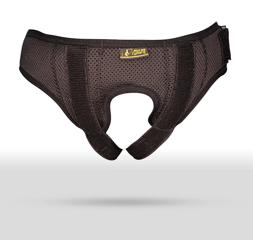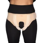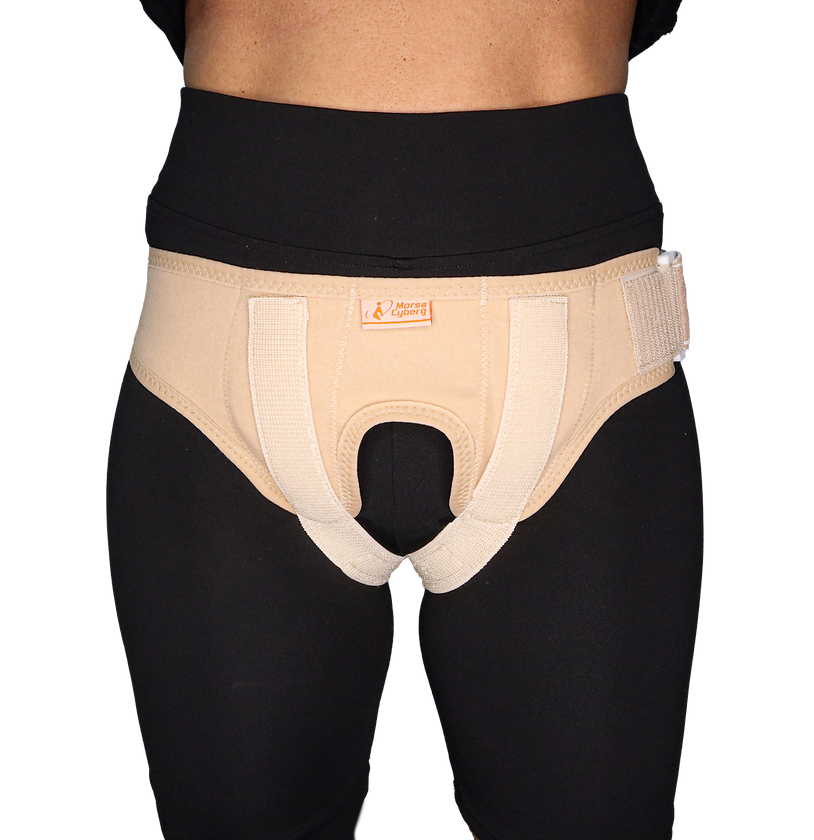 A tampon is applied on the hernia with a specially designed silicone pad.